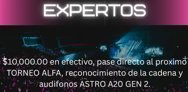 $12,000.00 En efectivo, Pase directo al Próximo TORNEO ALFA, reconocimiento de la cadena, Audífonos ASTRO A20 GEN 2, KIT de accesorios de patrocinadores.