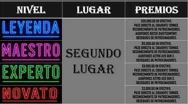 $15,000.00 En efectivo, Pase directo al Próximo TORNEO ALFA, reconocimiento de la cadena, Audífonos ASTRO A20 GEN 2, KIT de accesorios de patrocinadores y tarjeta google play de $1,000.00.